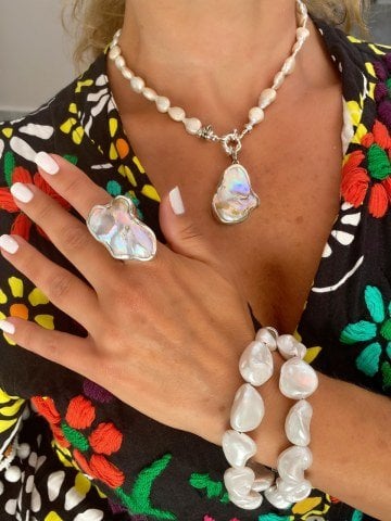 Doğaltaş 925 Ayar Gümüş Barok İncili Set